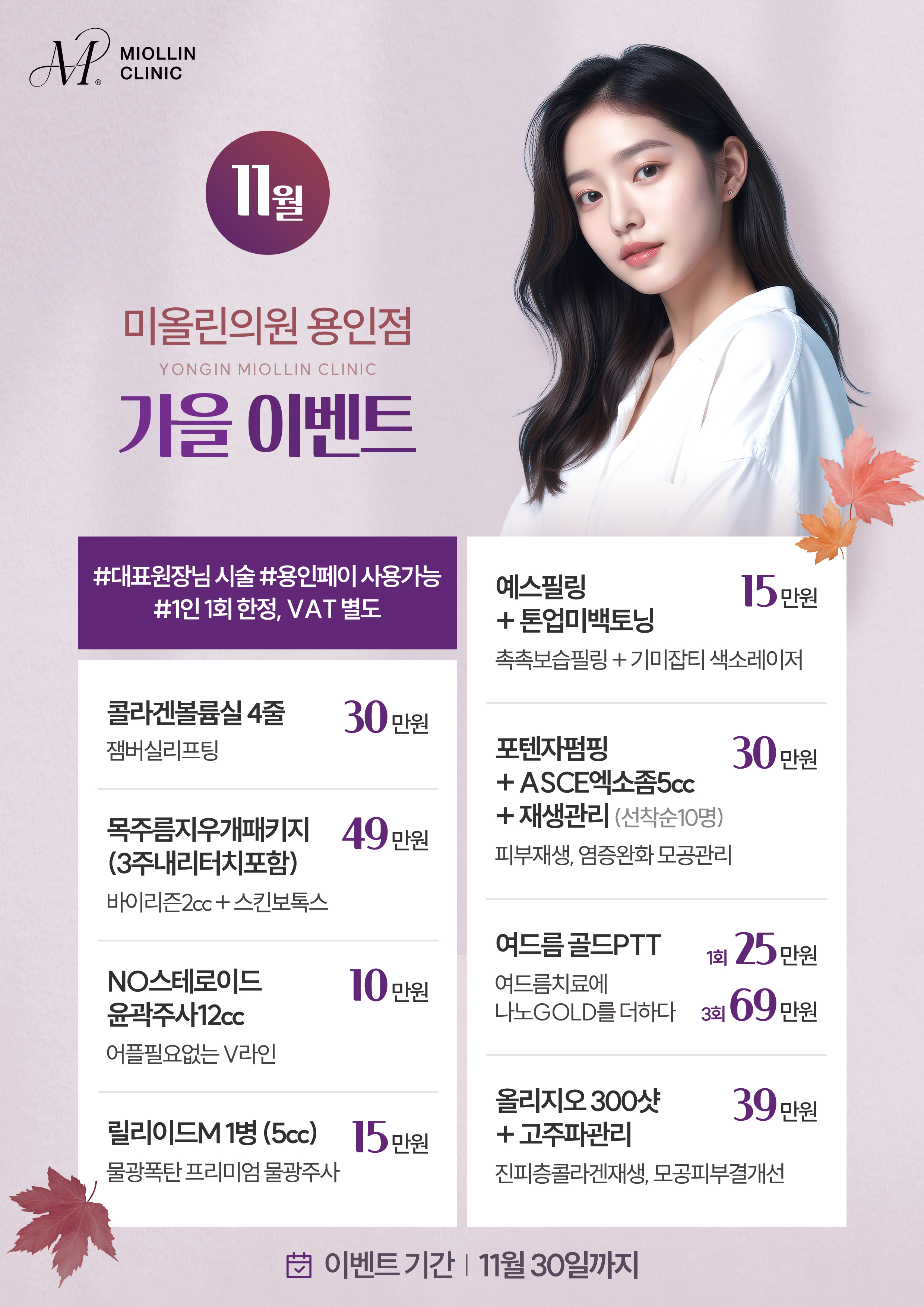 미올린의원 용인 11월 프로모션 페이지 정보 작성일작성일 25-07-11 10:52 조회 조회 891회 본문 목록 이전글미올린의원 용인 11월 첫방문 프로모션 25.07.11 다음글미올린의원 용인 내 마음대로 패키지 25.07.11