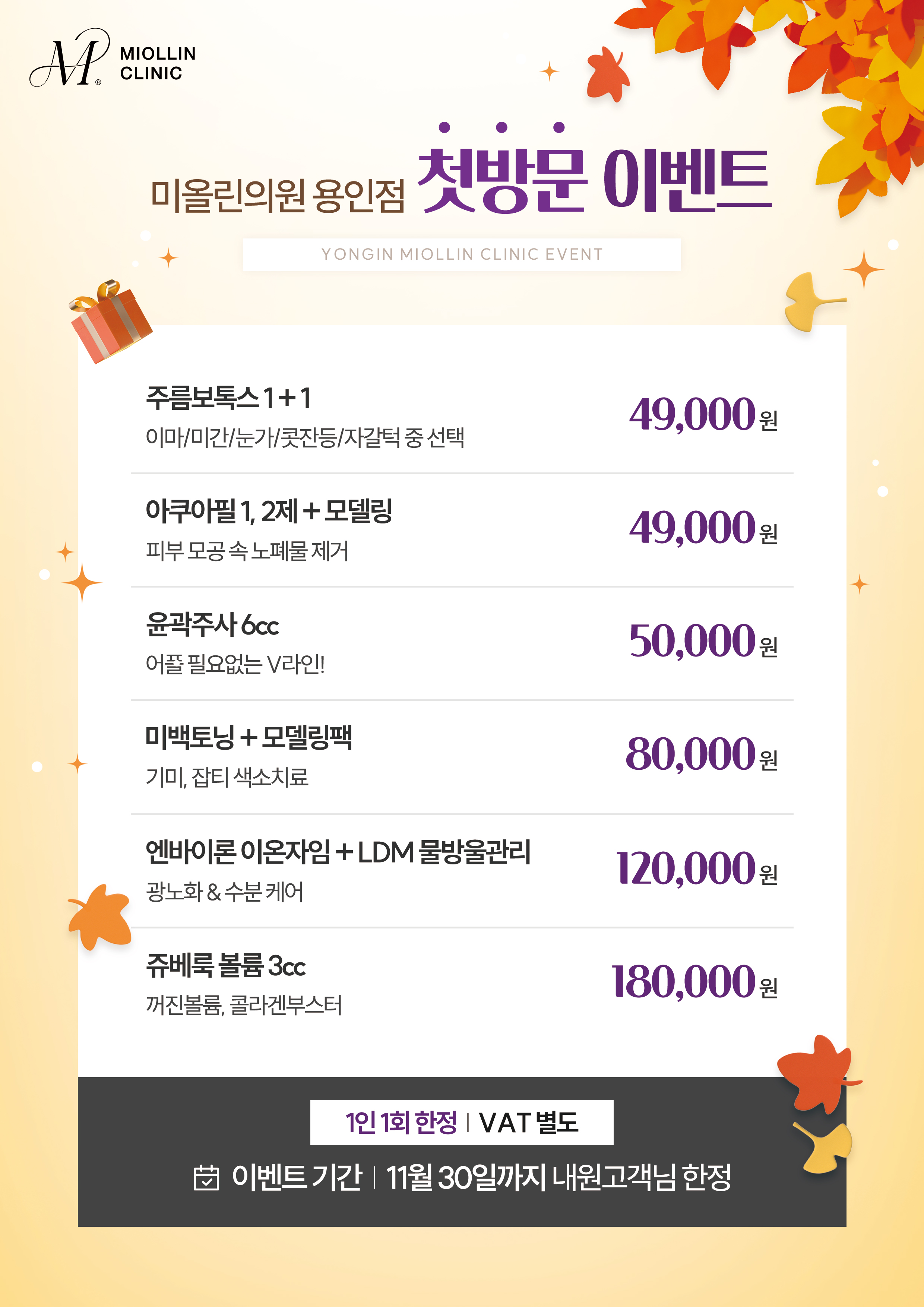 미올린의원 용인 11월 첫방문 프로모션 페이지 정보 작성일작성일 25-07-11 10:52 조회 조회 852회 본문 목록 이전글미올린의원 용인 울쎄라피 프라임 프로모션 25.11.03 다음글미올린의원 용인 11월 프로모션 25.07.11