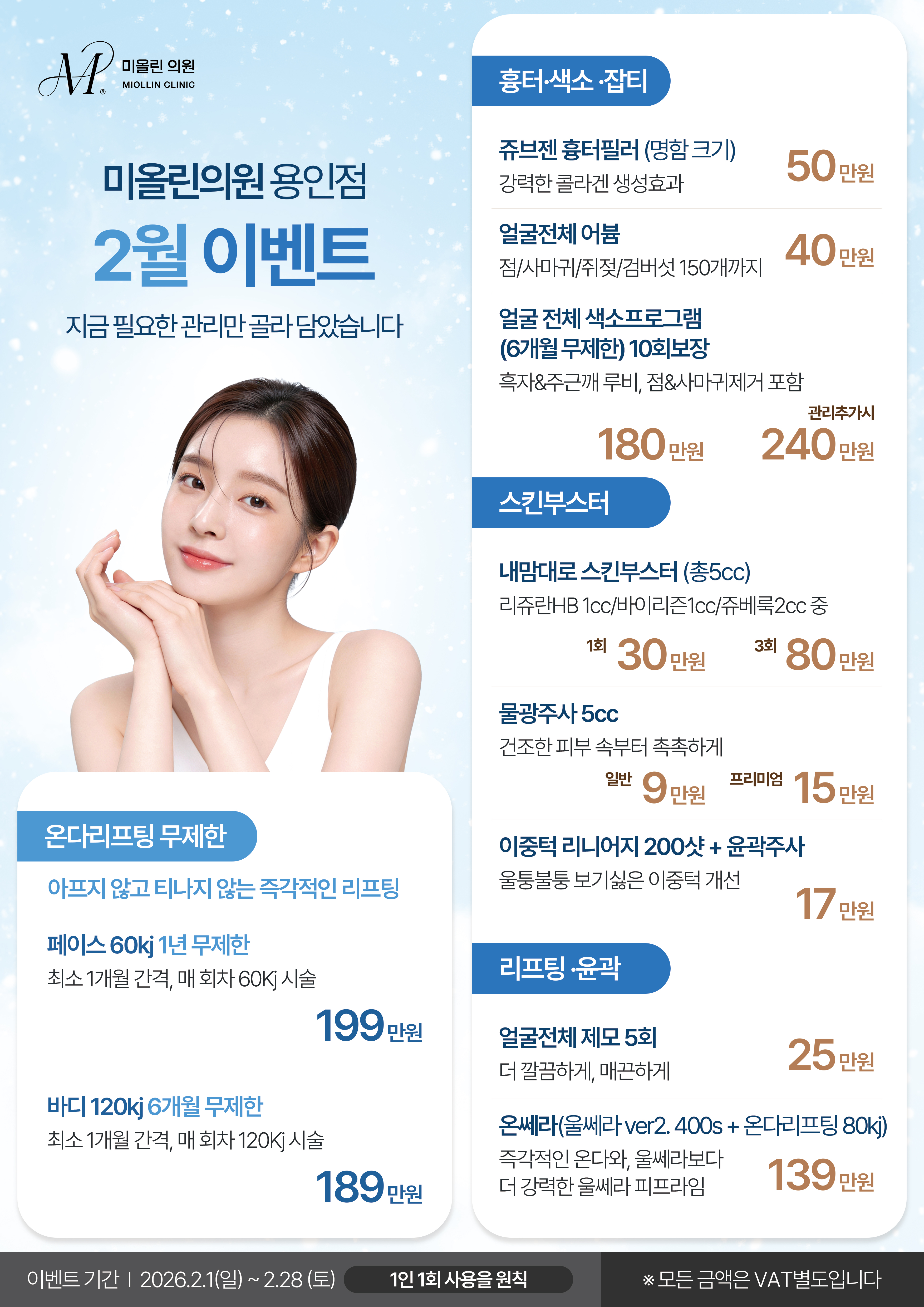 미올린의원 용인 2월 프로모션 페이지 정보 작성일작성일 25-12-01 15:38 조회 조회 748회 본문 목록 이전글미올린의원 용인점 첫방문 프로모션 25.12.01 다음글미올린의원 용인 타임이벤트 25.07.11